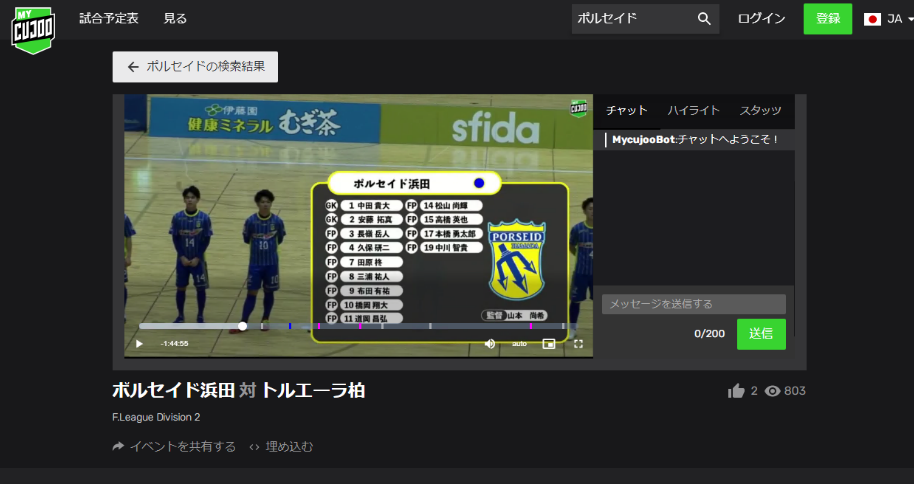 そのような中、地元の浜田商業高校のIT商業研究部の生徒さんによるMyCujoo(マイクジュー)という、サッカー・フットサルのインターネット配信を行っていただいており、情報発信のサポートをいただき感謝しています。