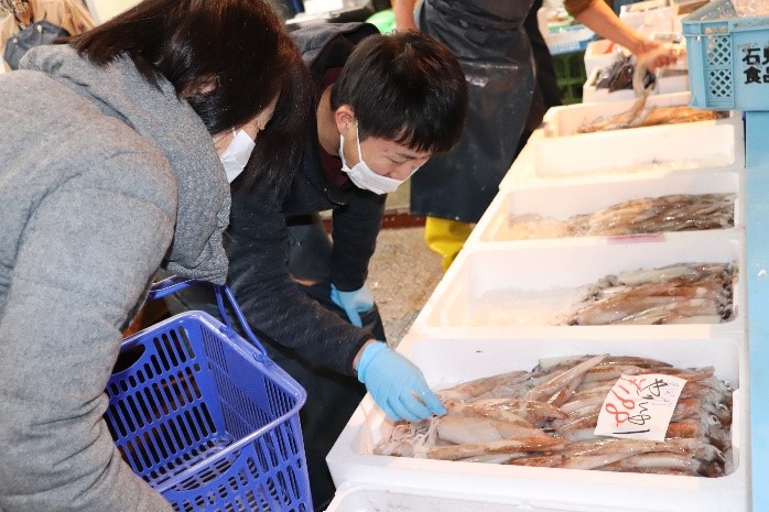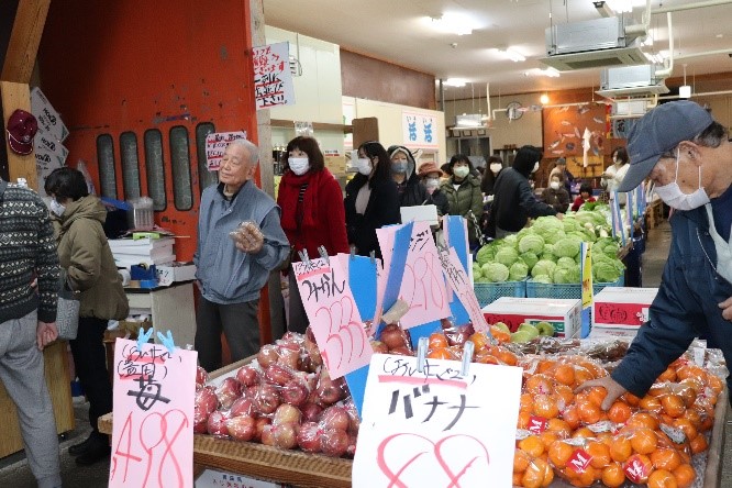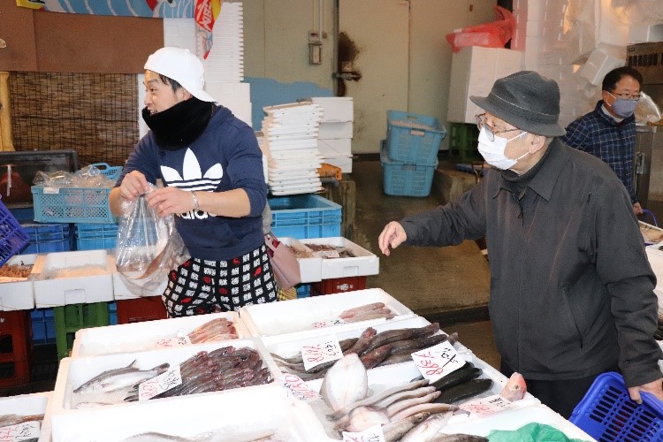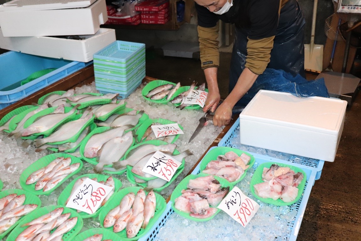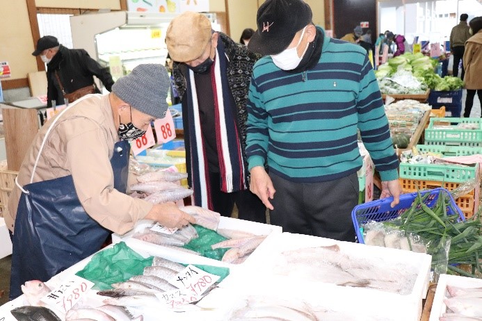 (柳専務)はい、毎週土・日の午前中には生鮮市場として、鮮魚だけでなく青果市場で仕入れたお野菜や惣菜なども販売しています。鮮度抜群なので是非一度来てみてください。