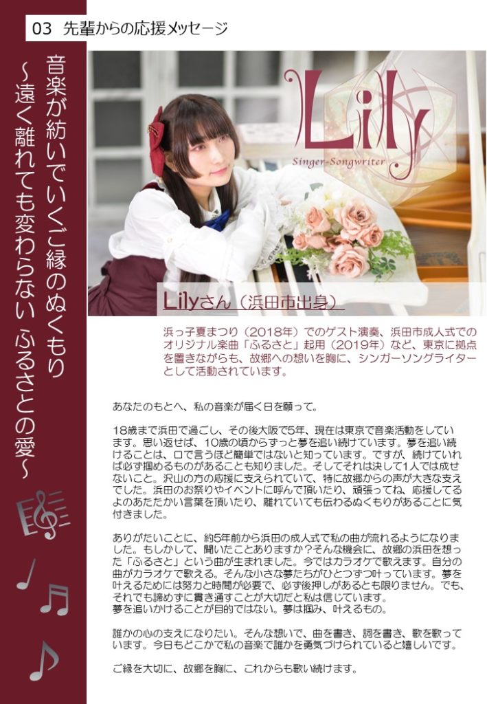 浜田応援団員として協力いただいているシンガーソングライターのLilyさんより、