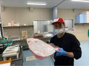 (渡部さん)それから、やなぎ水産の柳専務が巨大な魚を持って画面に登場し、突如「これは何の魚でしょうか?!」とクイズ大会が始まったのもたのしかったです。