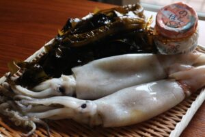 (渡部さん)今回はメインテーマのスルメイカ(たっぷり4杯入っていました!)と、シーライフさんののどぐろほぐし。出回る時期がすごく短いと伺っていた生わかめも入れていただきました。