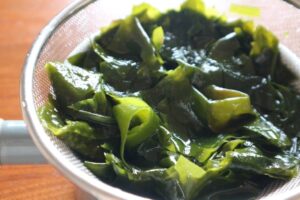 生わかめは「3月中旬ごろまでしか獲れないから、レッスンのタイミングで用意できるかどうか分からない」と言われていたのですが、シーライフさんとやなぎ水産さんの取り計らいで手配していただけました!ご参加の方からもとても喜んでいただけました。茹でると明るい緑色に変わるのも、料理していてたのしかったです。