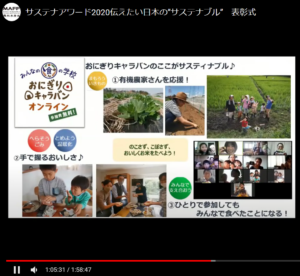 全国各地からオンラインで集まって、一緒におにぎりをつくるイベントなのですが、先日、このおにぎりキャラバンの活動が農林水産省・消費者庁・環境省連携「あふの環プロジェクト」主催の「サステナアワード2020伝えたい日本の”サステナブル”」にて、AgVentureLab賞を受賞しました。農林水産省令和2年度食育白書にも掲載されている熱い活動です!