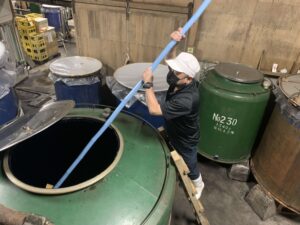 (小原さん)その年造る酒の計画を基に仕込み方法を考え、それを蔵人に細かく指示を出す。酒造りにおいての総責任者が杜氏です。私はもともと別の酒蔵にいたのですが、社長に声をかけていただき、8年前からここで働いています。