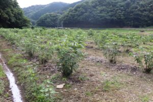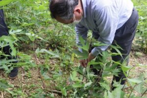 (酒井さん)芽かきも大事なのですが、芽かきの前に草抜きも忘れてはいけません。栄養分が雑草にとられないように楮の根本周辺をしっかり草抜きしてください。