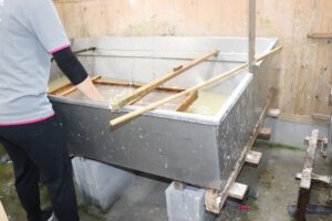 (西田さん)この工房では全体で約7トンの楮を使って和紙製品を作っています。酒井さんからは約34トンくらい仕入れていますね。残りは自分で工房近くの畑で栽培したり、県外からも仕入れています。