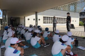 (写真:熱心に聞き入る三隅小学校の児童たち)