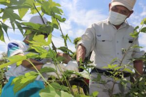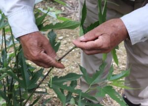 (酒井さん)芽かきも大事なのですが、芽かきの前に草抜きも忘れてはいけません。栄養分が雑草にとられないように楮の根本周辺をしっかり草抜きしてください。