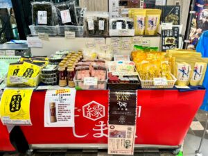 干物や赤天だけでなく、お菓子や乾物、お米などがズラリ。
