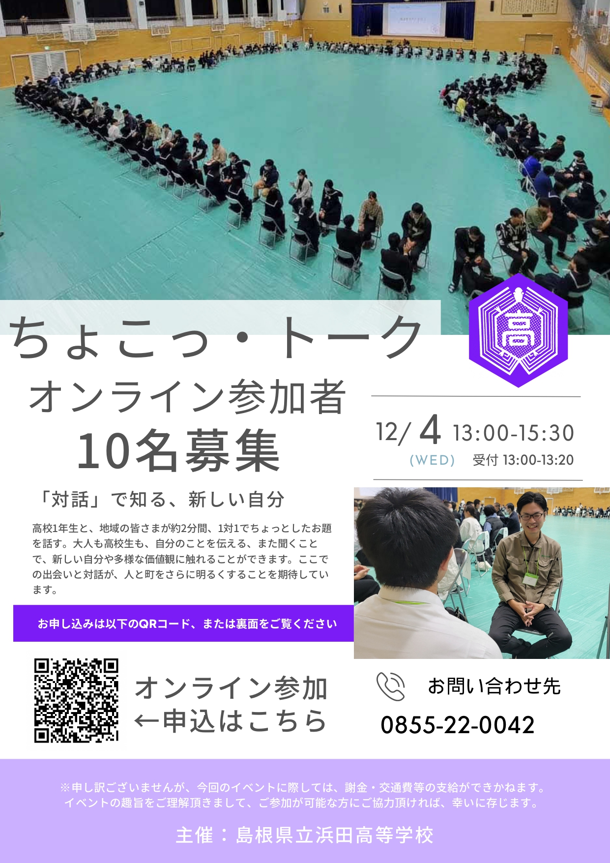 12月4日(水)に浜田高校でちょこっ・トークが開催されました!