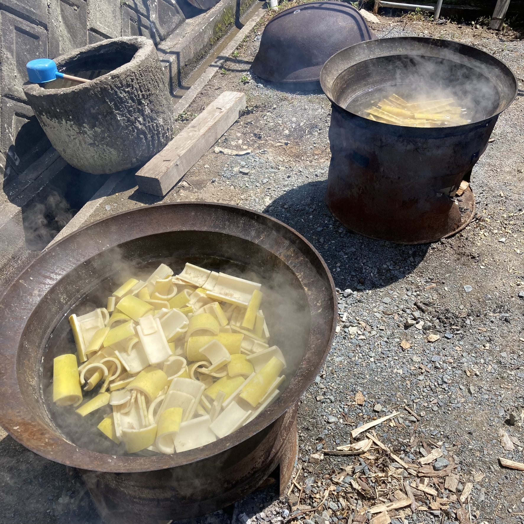 ・幼竹を塩漬けまでして捌き場まで持ち込む