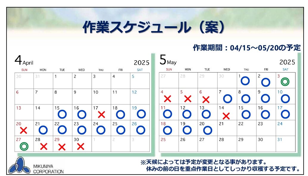 日    時:2025年4月下旬~5月下旬  特に土日の応援、大歓迎です!!