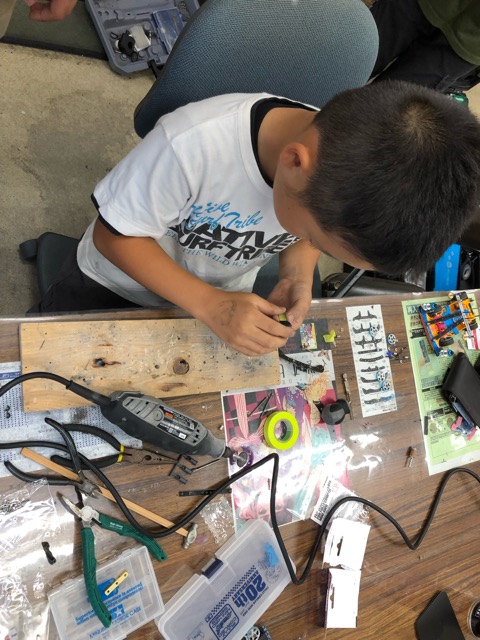 保育園の子どもたちは同じものを作っても、ひとりひとり全然違うものができるんです。逆に、高校生向けに授業をするとき、見本と同じように作ろうという固定概念にとらわれるとみんな似たような作品になってしまうことがあったりします。見本と同じように作るのではなく、ひらめきや自分のアイデアを大事にしてほしくて、いろんな道具、素材をつかってアイデアマンになってもらうことを教えています。