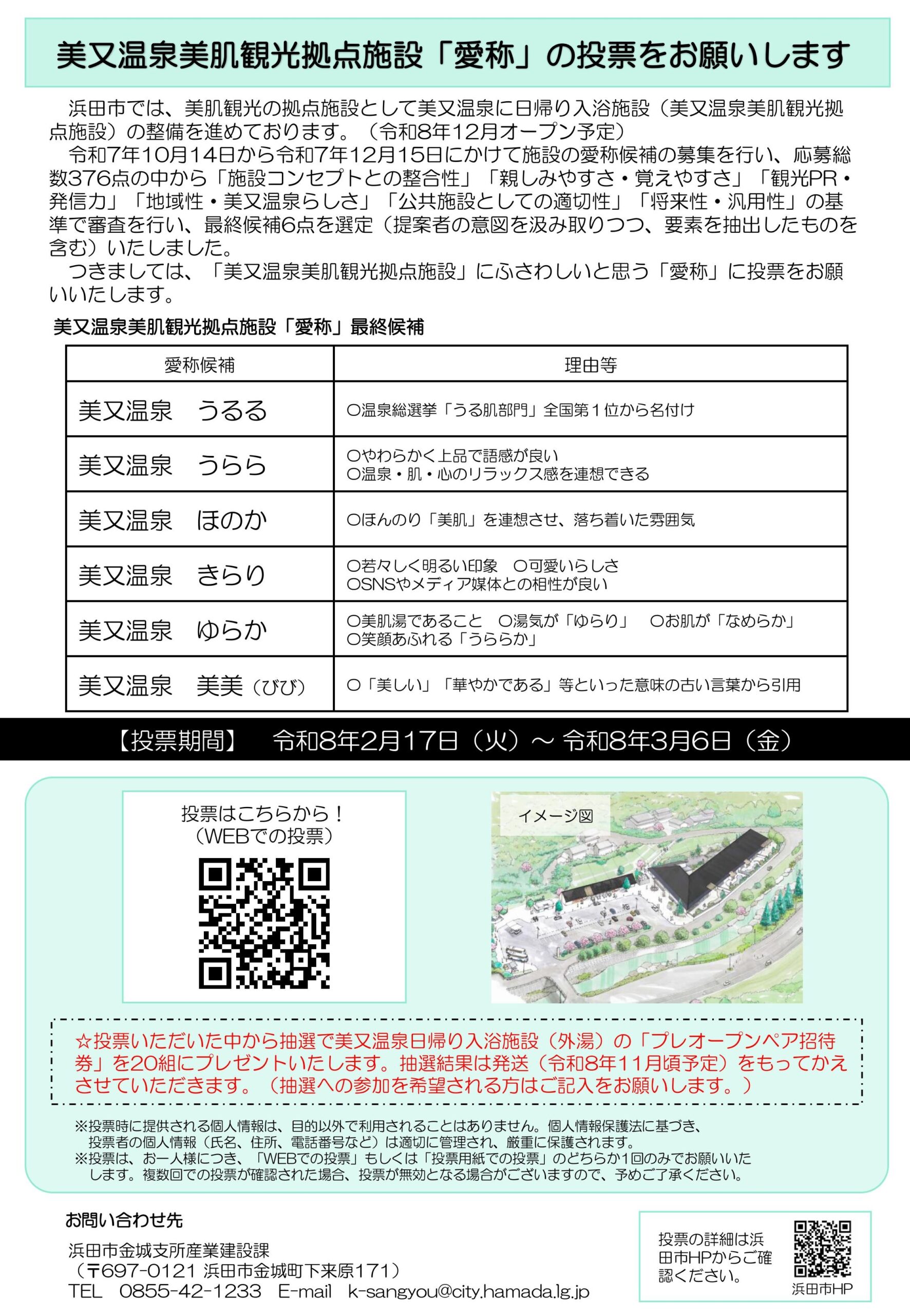 【美又温泉美肌観光拠点施設「愛称」投票のお願い】(締切3/6)